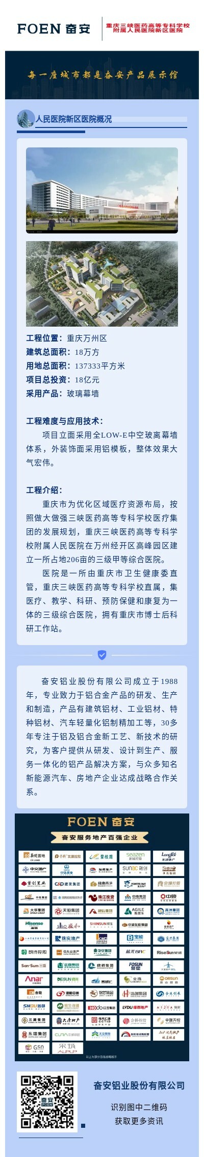 【工程項目案例】重慶三峽醫藥高等??茖W校附屬人民醫院新區醫院采用奮安鋁材